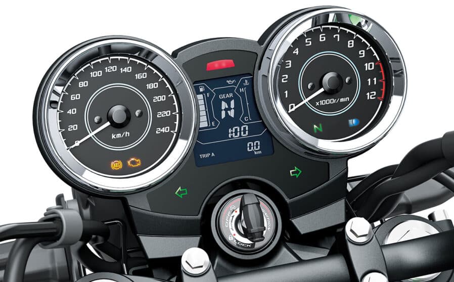 Detalhes com design distinto, como o clássico faról redondo em LED, instrumentação analógica, cores influenciadas nos anos 70, além de um motor de dois cilindros, criam um impressionante ponto de referência no segmento neo-retrô.